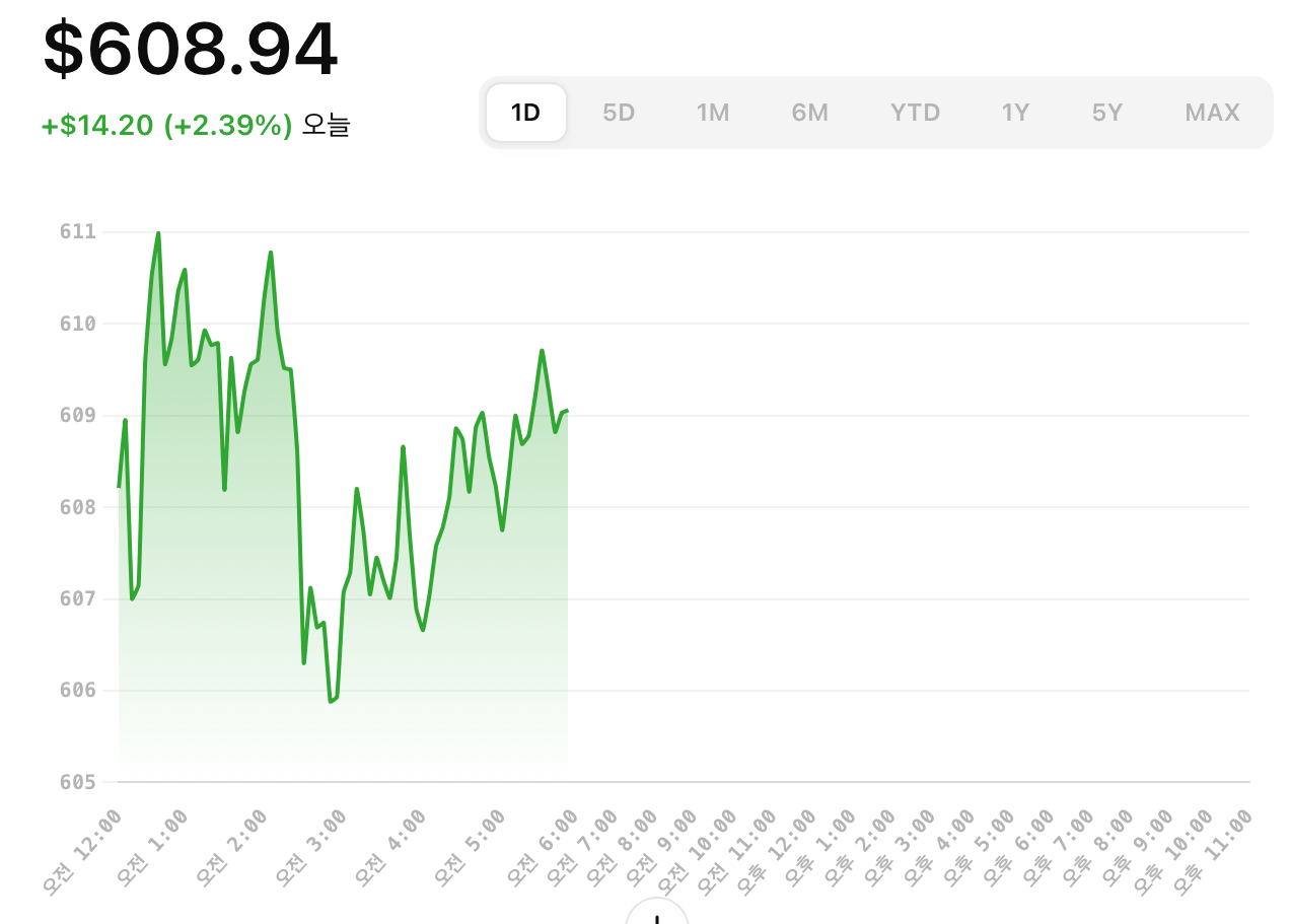 - 피보나치 되돌림: 최근 상승폭의 50% 되돌림 수준인 $590에서 지지를 받고 있으며, 이는 강한 지지선으로 작용할 수 있습니다.